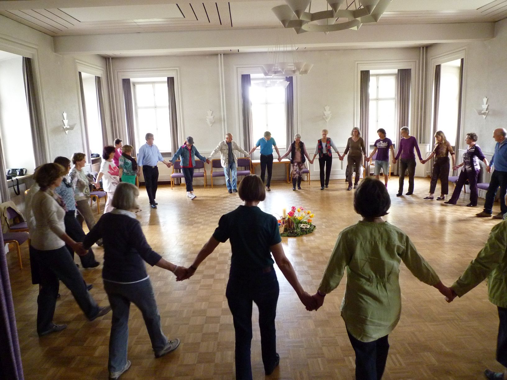 Wer sich für Tanzexerzitien entscheidet, wählt eine Exerzitienform, die Elemente aus den klassischen Einzelexerzitien mit dem meditativen Tanzen verbindet. Im Mittelpunkt der Tage steht die persönliche Beziehung zu Gott. Was durch die Meditation und Kontemplation angestoßen wird, kann sich im Tanzen vertiefen, indem wir unseren Körper in einer bewegten Weise ins Gebet einbeziehen. Diese Erfahrung fließt zurück in die Meditation... Exerzitien sind eine Zeit des Innehaltens, des “Wahr“- nehmens wer ich bin und wie ich jetzt da bin. Sie ermöglichen eine Neuorientierung und Vertiefung auf meinem geistlichen Weg, sie stellen die Frage nach Gottes Willen für meinen konkreten Alltag. Dazu hilft uns ein fester Tagesablauf, der neben Elementen für die Gruppe auch Raum zum eigenen Gestalten freigibt.